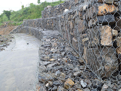 4.施工方便:石笼网兜可按设计意图,工厂化生产制作出半成品,施工现场则按设计图进行组装定型,操作简便、受气候干扰小,且适宜于机械化操作,既可保证施工质量又可加快工程进度。