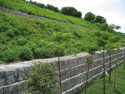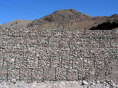 格宾挡墙整体性好,由高强度钢丝编织的网笼再由绑丝绑扎到一起,可局部变形,而整体不会被破坏,内部填充石料的结构,使其中间缝隙多,透水性好,不会造成雨水或者水流的雨淤积,另外这种结构,经长期土壤灰尘的堆积,可形成适合植被生长的环境,对环境影响小,另外还有施工简单快捷,寿命长等特点。