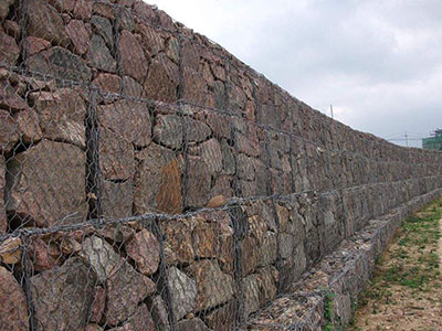 格宾挡墙是将符合要求的石料填充到具有柔性的格宾网(即六角矩形网箱)中,使整体具有一定的孔隙率、逐层堆砌的一种新型的柔性挡土材料。格宾挡土墙多用于受水流冲刷和风浪侵袭,水土流失严重的护坡、护岸、护堤工程。又因其造价低、生态性好、适用性强、具有一定的柔韧性等特点得到了越来越多的应用。