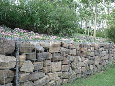 格宾笼是由金属线材编织的角形网(六角网)制成的网箱。石笼网由高不腐蚀、高强度、具有延展性的低碳钢丝或者包覆PVC的以上钢丝使用机械编织而成,使用该网制作而成的箱型结构就是石笼。