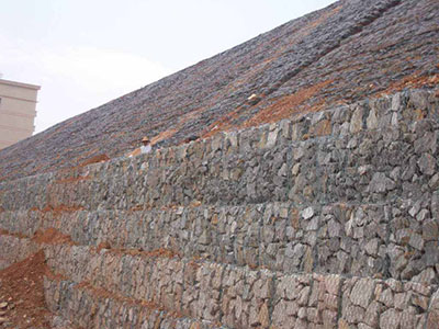 格宾挡墙整体性好,由高强度钢丝编织的网笼再由绑丝绑扎到一起,可局部变形,而整体不会被破坏,内部填充石料的结构,使其中间缝隙多,透水性好,不会造成雨水或者水流的雨淤积,另外这种结构,经长期土壤灰尘的堆积,可形成适合植被生长的环境,对环境影响小,另外还有施工简单快捷,寿命长等特点。
